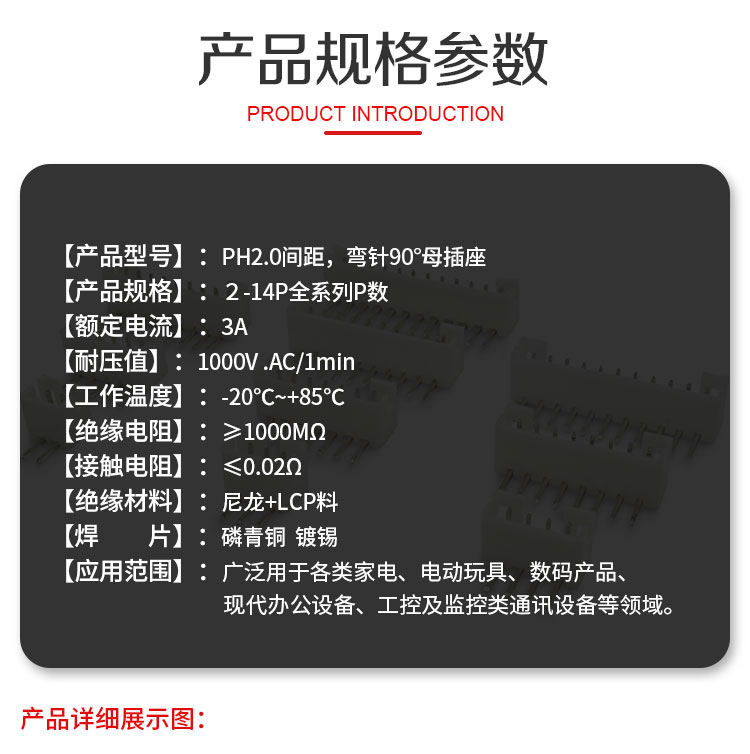 弯针 PH2.0mm间距 弯针插座 2P3P4P5P6P7P8P9P10P~12P连接器