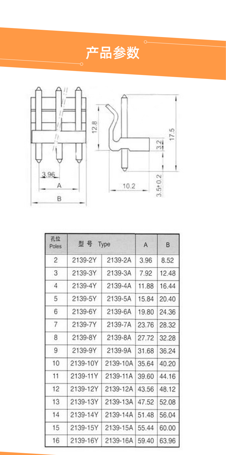 CH3.96直针 3.96直针 直插 插座 2P3P4P5P6P7P8P9P10P等 针座