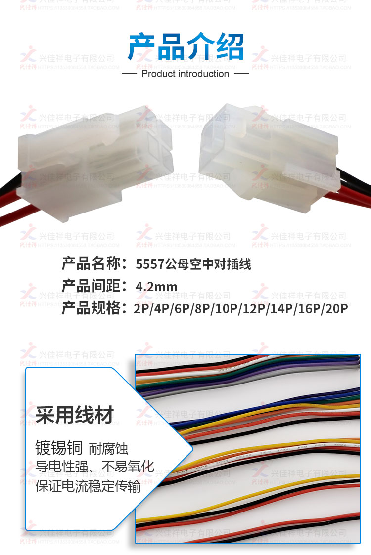 5557-2P公母空中对插线4P6P8P10P对接端子线12P14P16P20P 4.2间距